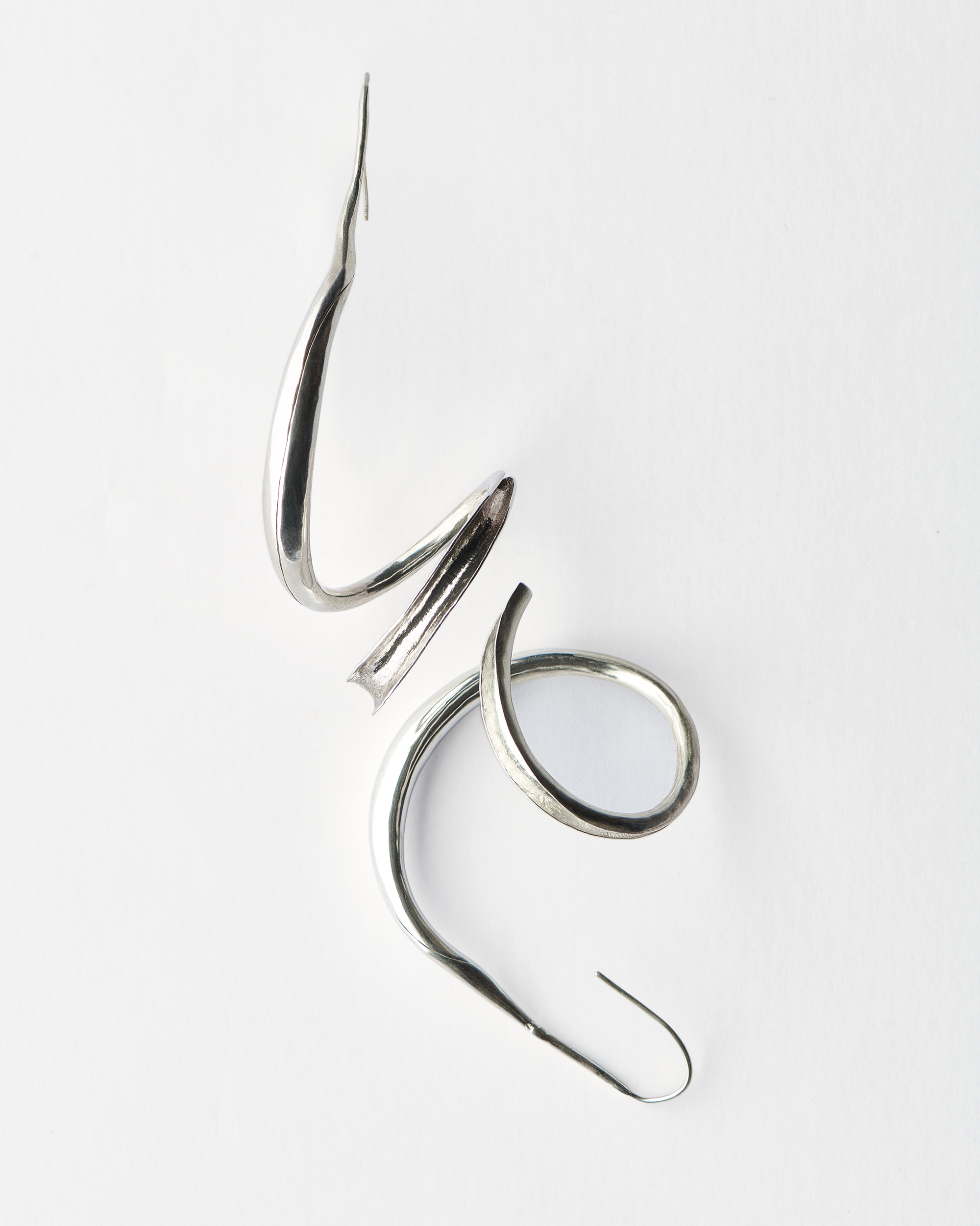 A curve that breathes. A silver spiral that moves with the wind and vibrates lightly with every step —like a whispered dance between light and silence.